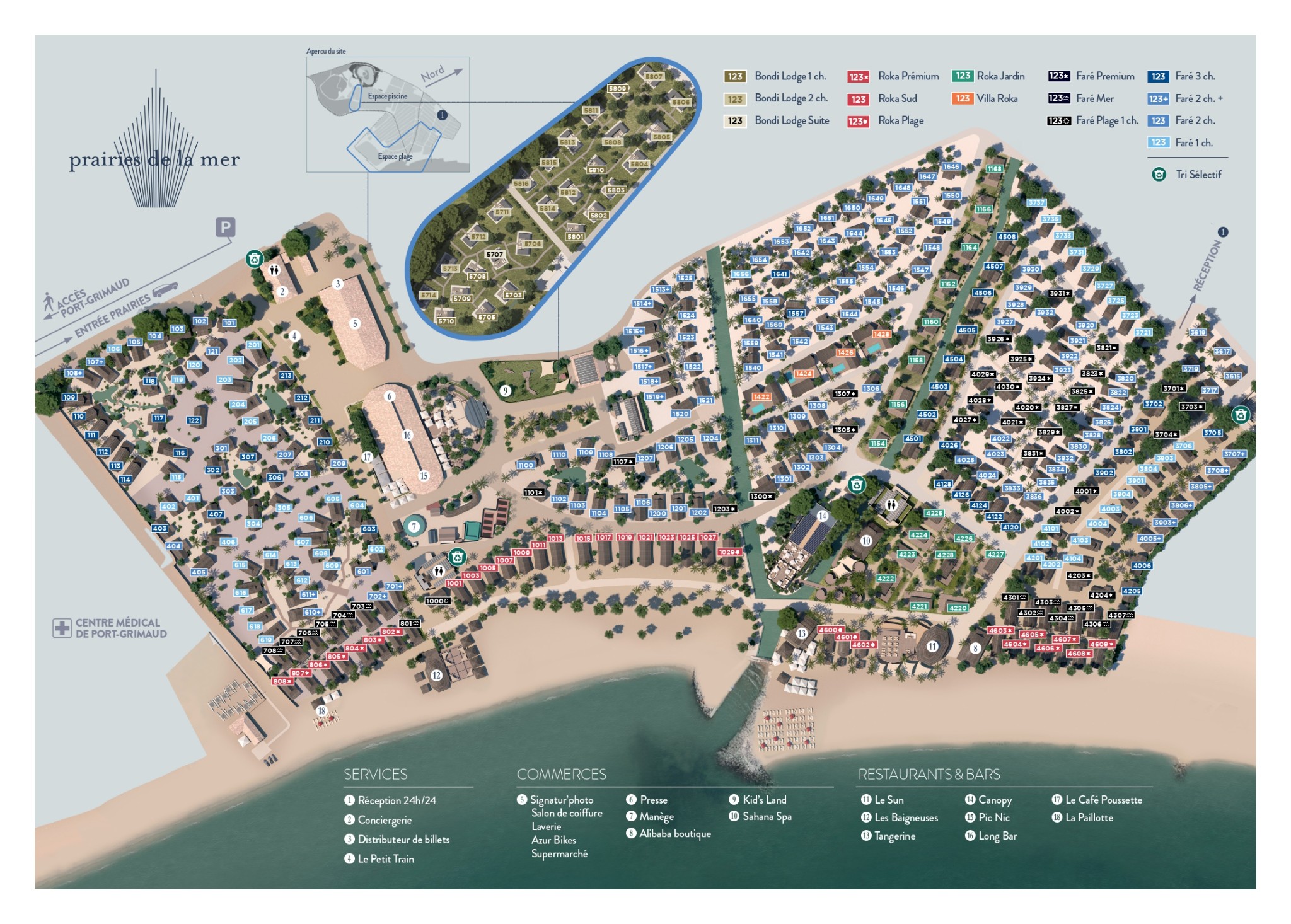 Bekijk Prairies de la Mer en zijn verschillende diensten in één oogopslag dankzij de algemene kaart. U kunt deze in hoge definitie downloaden door op onderstaande knop te klikken.